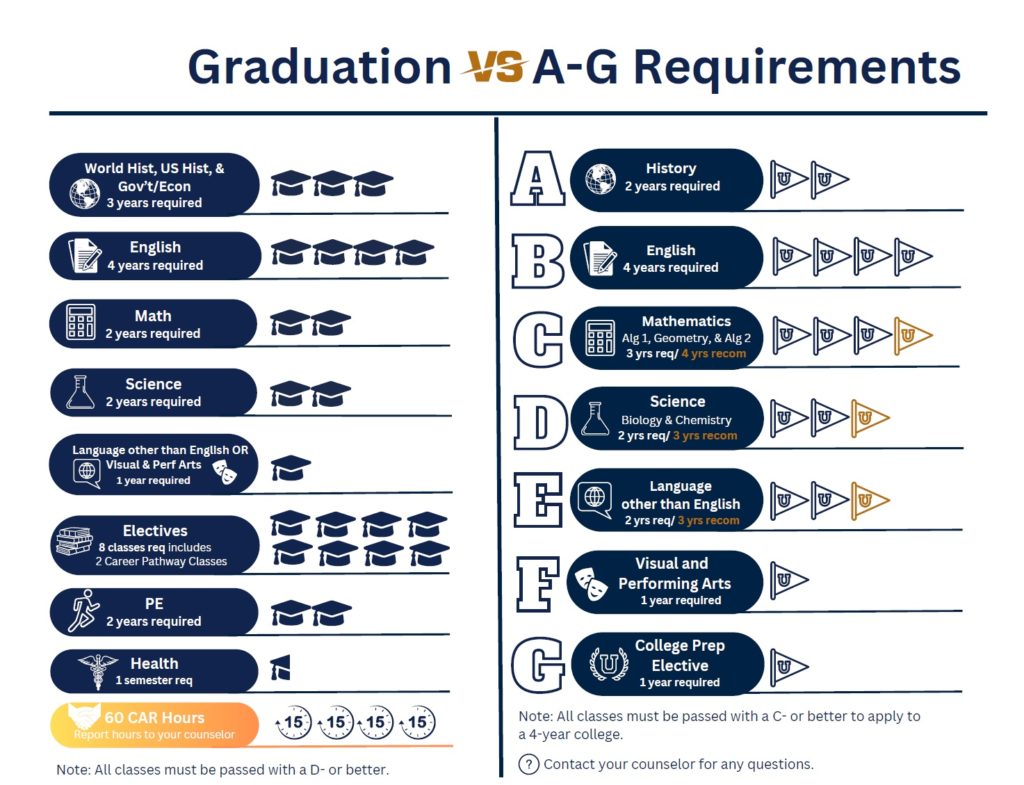 改めて卒業要件とUC/CSU出願に必要なA-G要件を見比べると、若干違っています。